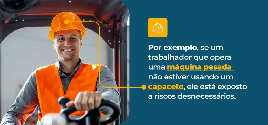 Se um colaborador que opera uma máquina pesada não estiver usando um capacete apropriado, por exemplo, ele pode sofrer lesões graves em caso de queda de objetos.