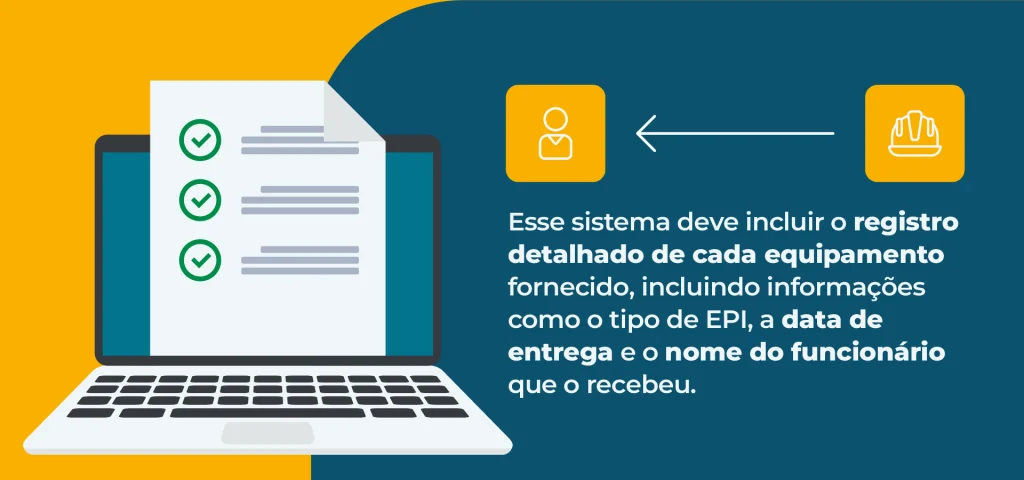 Esse sistema deve incluir o registro detalhado de cada equipamento fornecido, incluindo informações como o tipo de EPI, a data de entrega e o nome do funcionário que o recebeu.