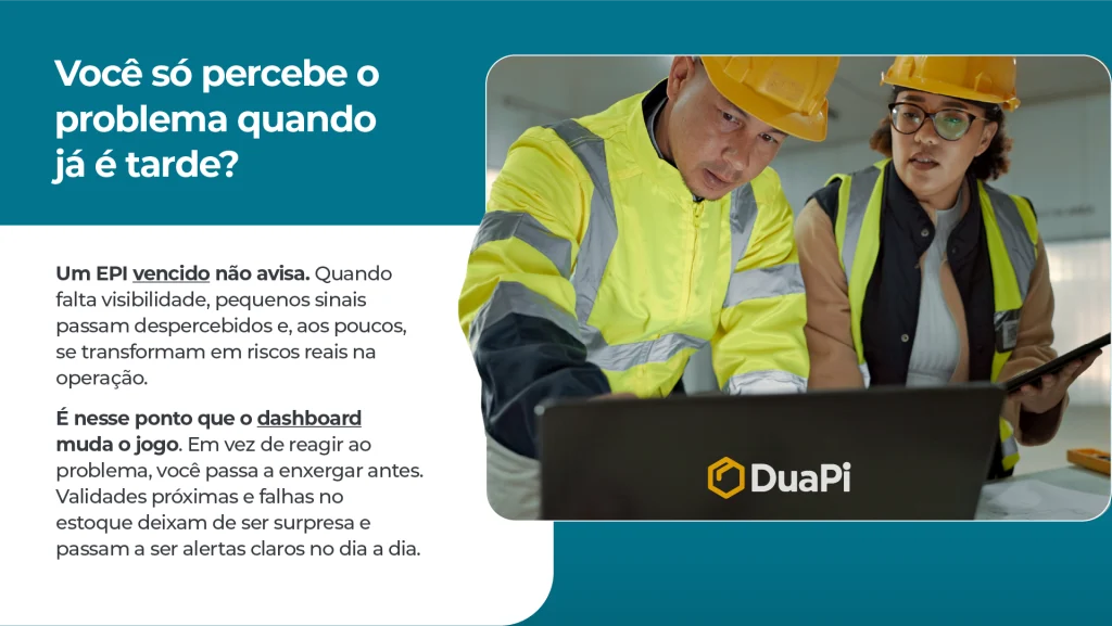 Nesse contexto, a DuaPi se destaca ao oferecer uma solução que combinam dashboards intuitivos e relatórios detalhados, facilitando a gestão de EPIs e promovendo processos ágeis, confiáveis e seguros. Entre em contato e agende uma demonstração do software que facilita a sua gestão de EPIs.